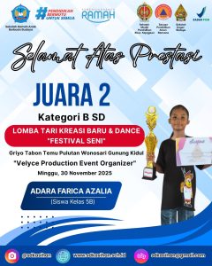 Pada hari Minggu, 30 November 2025 salah satu siswi SD N Kasihan yang bernama Adara Farica Azalia (5B) mendapatkan juara 2 pada kategori B SD Lomba Tari Kreasi Baru & Dance “Festival Seni”. Lomba tari ini dilaksanakan di Griyo Tabon Temu Pulutan, Wonosari, Gunung Kidul. Prestasi ini didorong oleh dedikasi dalam latihan, kekompakan tim, dan pelestarian nilai budaya. Pencapaian ini membuktikan kreativitas dan kepercayaan diri ada pada anak sejak dini